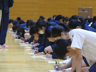 円陣を組んで歌ってみるクラス、体を揺らす、足踏み、振り付けなど、どのクラスも自発的にアイデアを持ち寄っており、自分たちの校歌をより素敵に歌おうという思いを強く感じました。